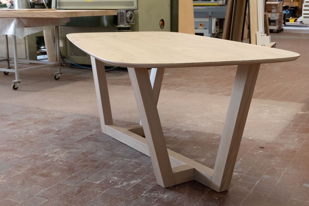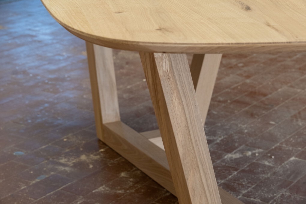 Leo è un grande tavolo di forma ovale, la particolare forma delle gambe ne caratterizza il disegno.