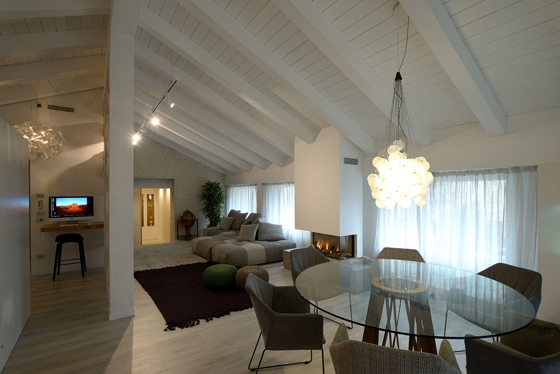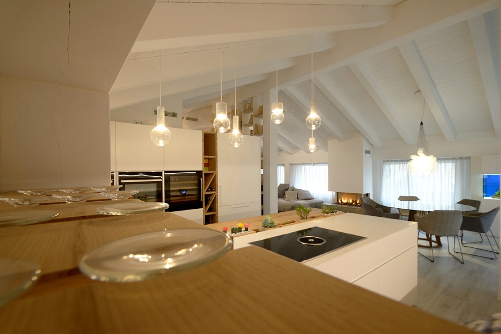 Bianco e legno naturale, uno spazio pensato per lui, sommelier, e per lei, lettrice instancabile. Un open space”ad personam” che interpreta le passioni dei clienti e le trasforma in dettagli funzionali e accoglienti.
